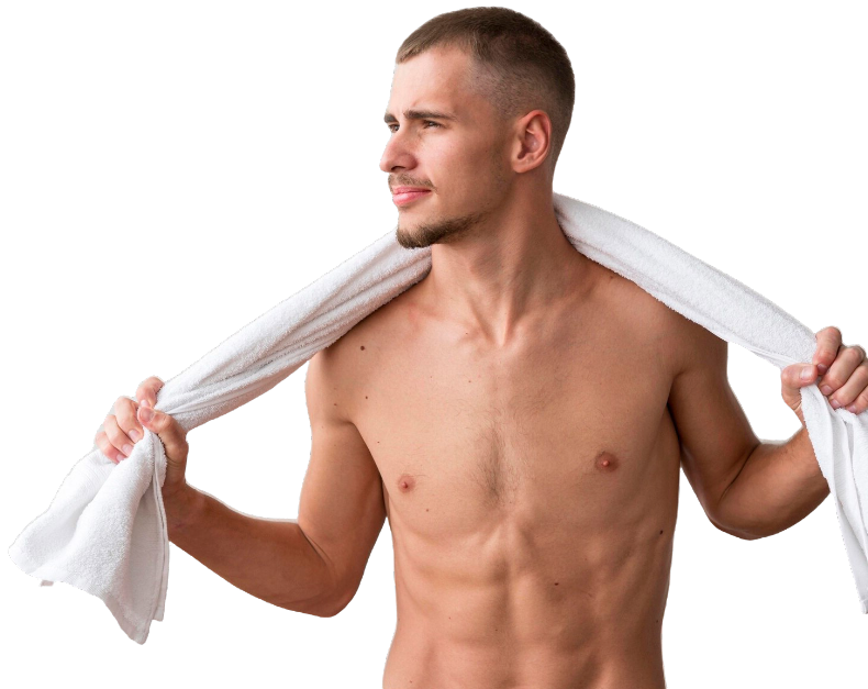 Enhance your muscles and define your appearance with our waxing of the male chest and abdomen, ensuring smooth and defined skin.
